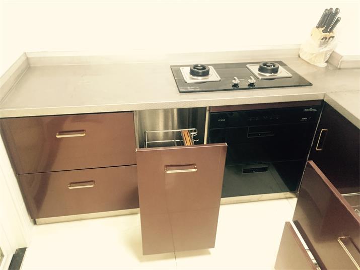 此套酒紅不銹鋼整體櫥柜,臺面板采用實(shí)厚2毫米304材質(zhì)??梢允褂?00年的不銹鋼整體櫥柜。