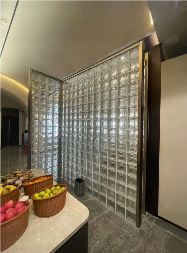 酒店大廳不銹鋼框架方格玻璃藝術(shù)屏風(fēng)